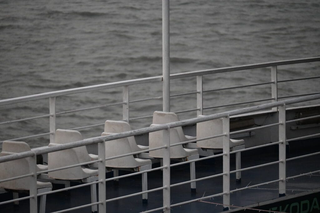 As the ferry prepared to depart, the surroundings came alive with birds. Dozens of egrets could be seen flying all around — gliding low over the water, circling the dock, and settling briefly before taking off again. The sight added a quiet, natural rhythm to the moment, making the journey feel less like a commute and more like an experience.